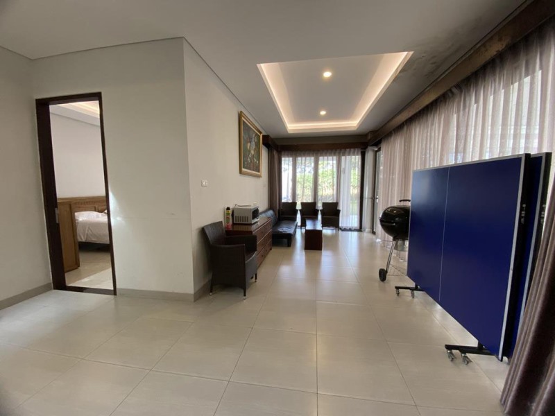 Untuk menghabiskan waktu bersama keluarga atau teman, villa ini menyediakan ruang keluarga yang luas dan nyaman. Di sini, Anda dapat menikmati berbagai hiburan seperti televisi, wifi cepat, dan karaoke. Ruang keluarga ini dirancang untuk membuat Anda merasa seperti di rumah sendiri, dengan fasilitas hiburan yang lengkap.